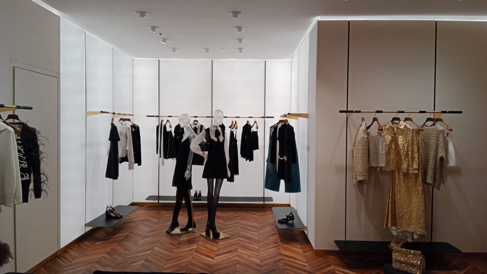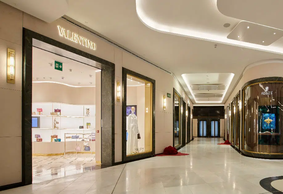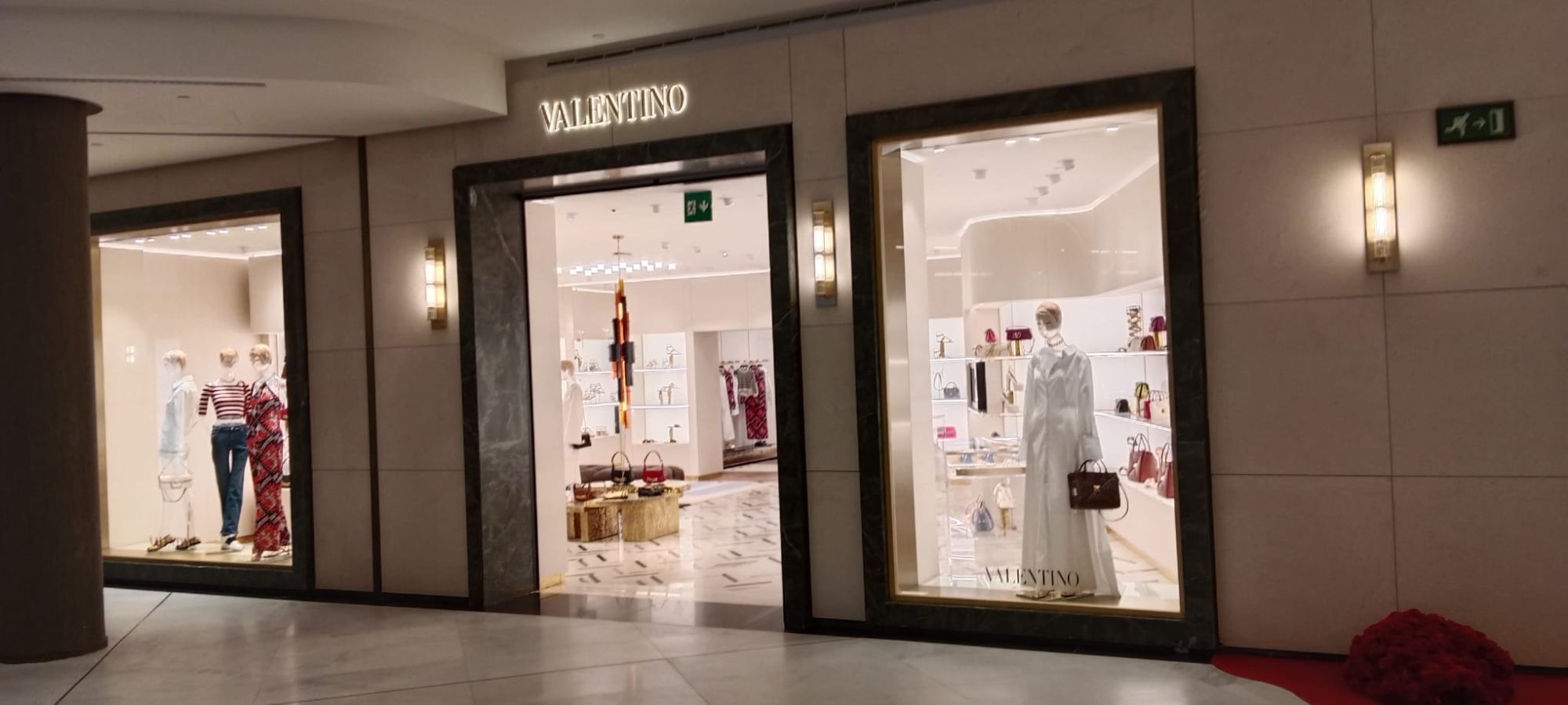 L’espace intérieur a été conçu pour refléter l’identité de Valentino, mêlant élégance contemporaine, sophistication et forte dimension créative. La sélection de matériaux nobles, des finitions haut de gamme et une palette chromatique raffinée composent un environnement qui sublime l’expérience sensorielle du client. L’éclairage, soigneusement étudié, met en valeur l’architecture du lieu ainsi que les collections présentées, créant une atmosphère exclusive, en cohérence avec le positionnement premium de la marque.