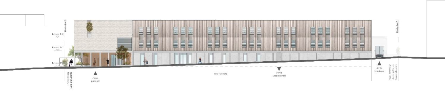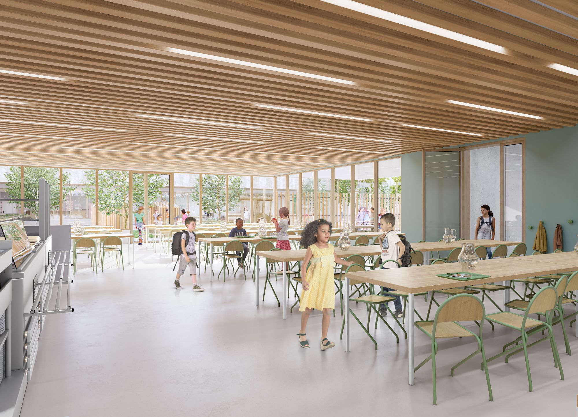 - L’autre destinée à la restauration et la production de repas en liaison directe avec l’aire de livraison mais également les cours de récréation.