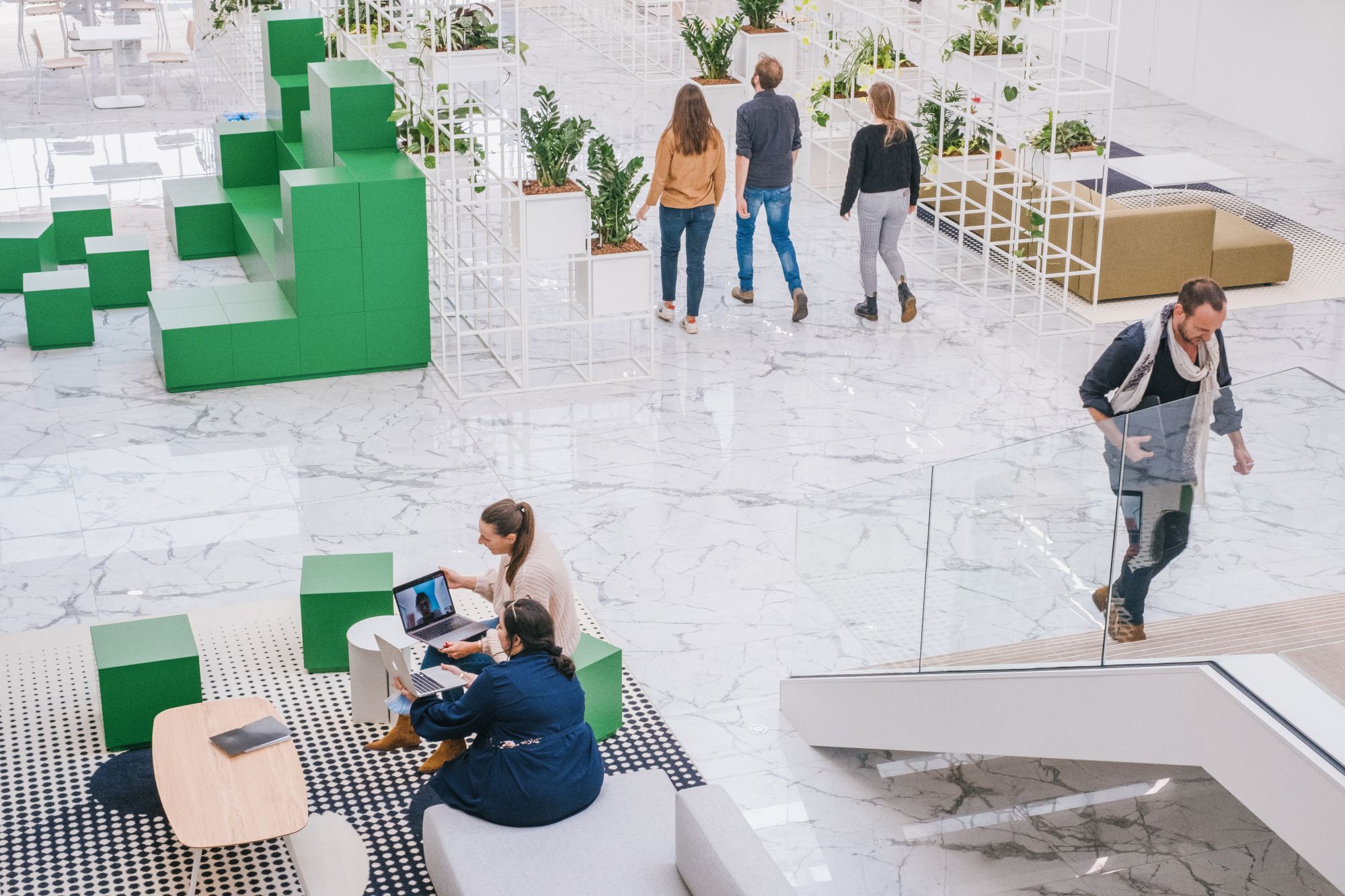Son hall d’accueil et ses espaces de bureaux ont été pensés comme de véritables lieux de rencontres, pour un cadre de travail où il fait bon travailler et se retrouver.
